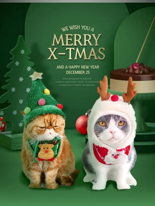 2-in-1 Dog Christmas Outfit – Santa Costumes (Hat + Bandana Set)