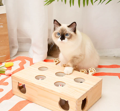 Interactive Wooden Whack-a-Mole Cat Toy