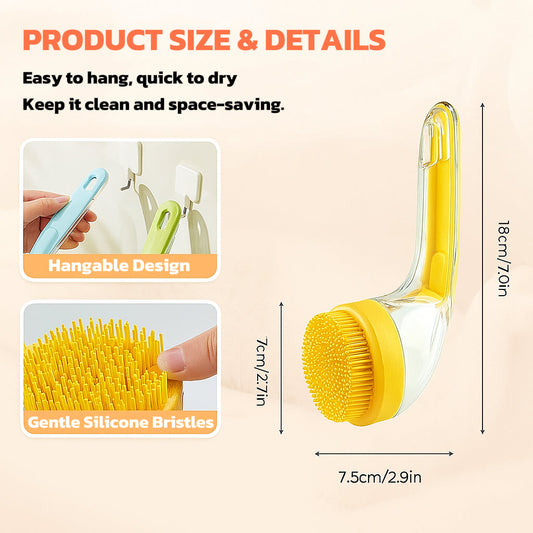 Dog Bath Brush | Silicone Grooming Brush with Long Handle & Soap Dispenser