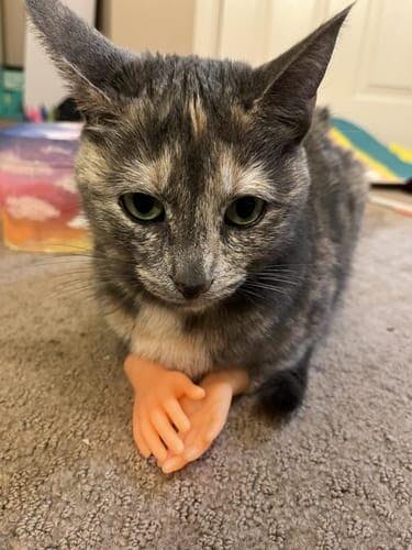 Got a bored kitty? Transform their paws into hilarious human hands with these stretchy finger toys!